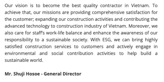 " Our vision is to become the best quality contractor in Vietnam. To